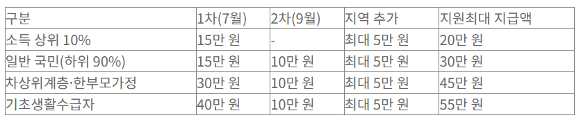 - 지급 금액은 소득 수준, 가구 유형, 거주 지역에 따라 차등 적용됩니다.